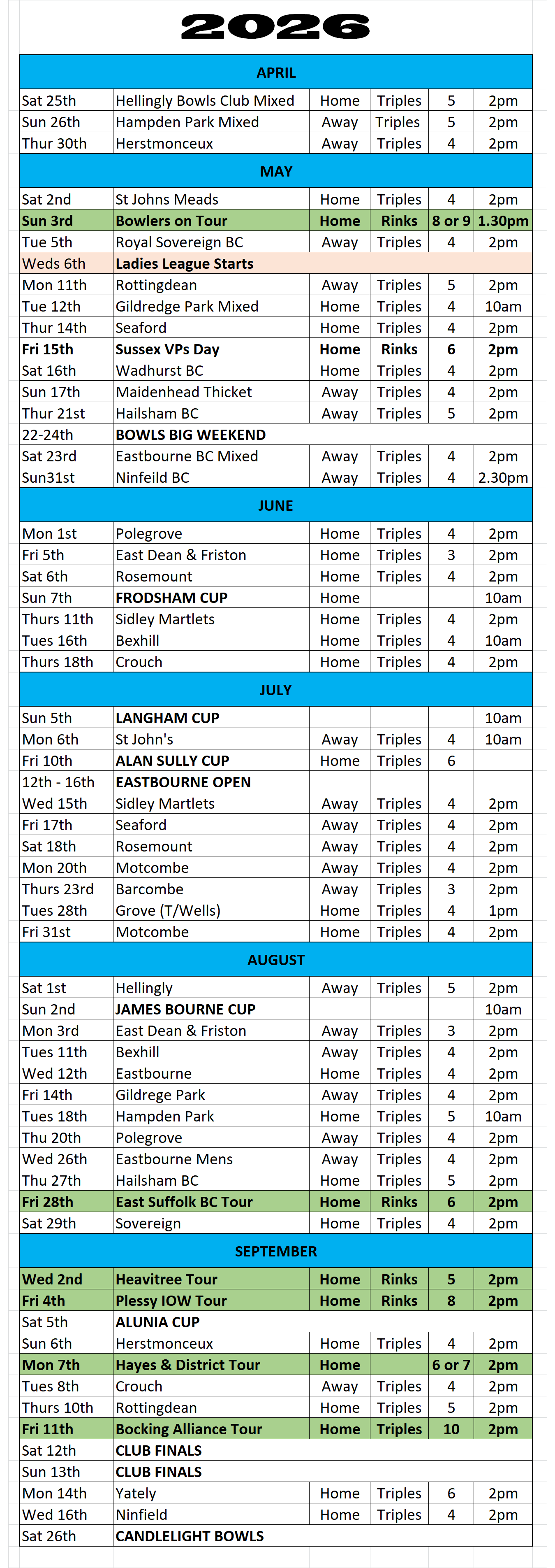 Club Fixtures